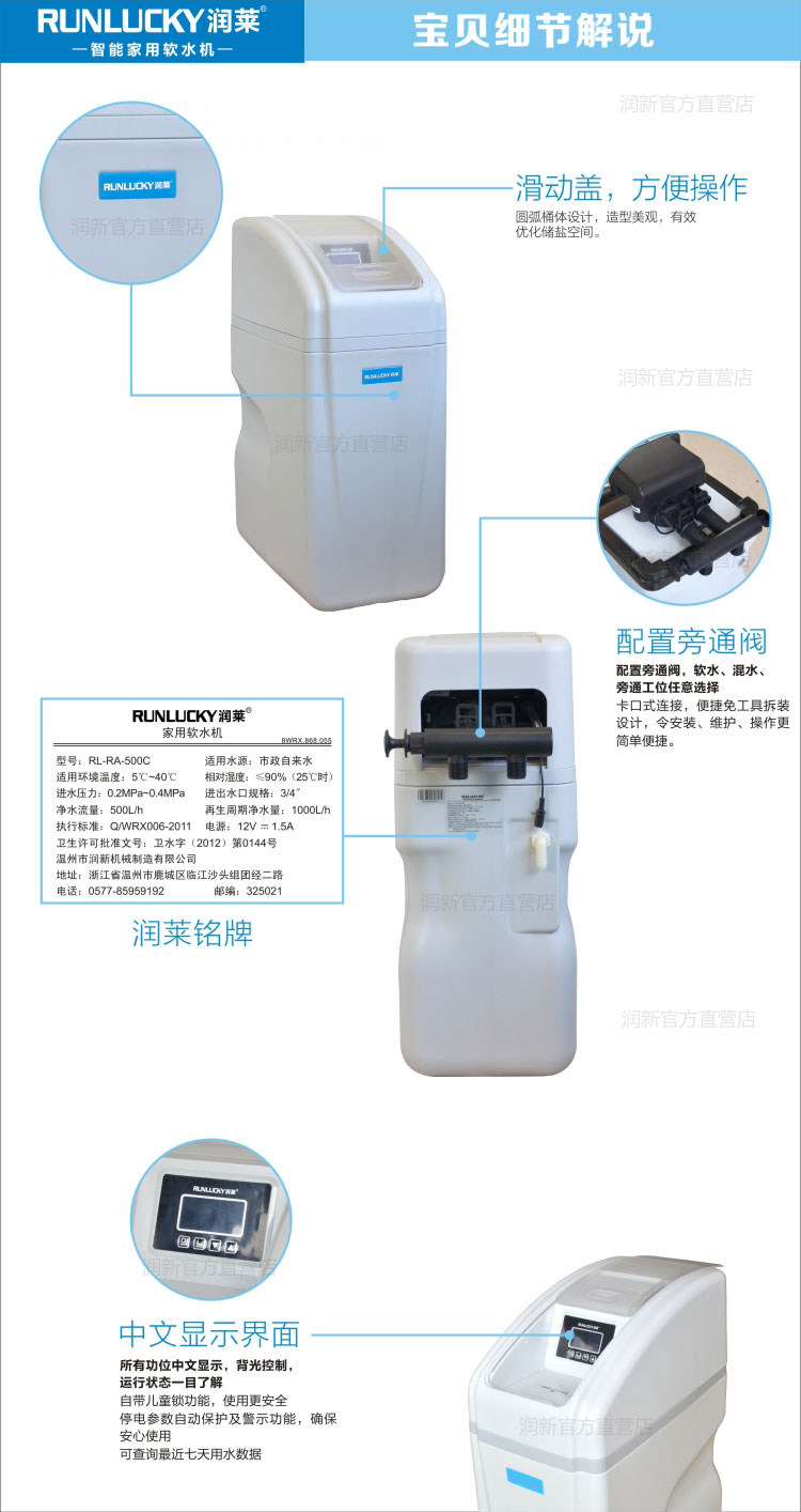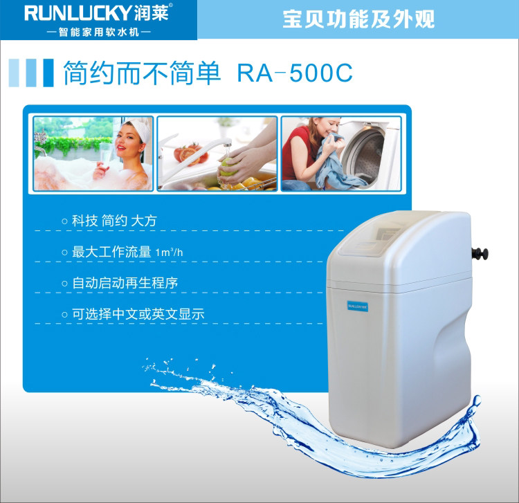 润莱家用软水机全屋中央软化沐浴除垢器软水器 RA-500C